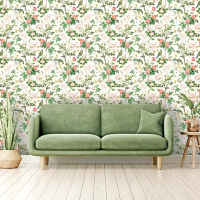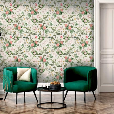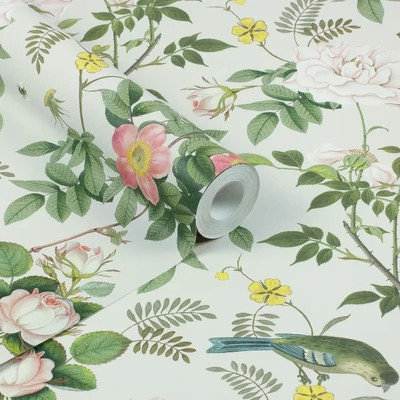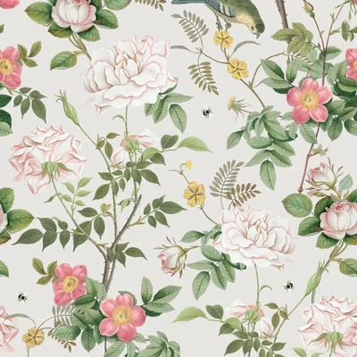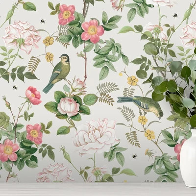 Elragadó rózsakert mintás tapéta, méhecskékkel és madarakkal