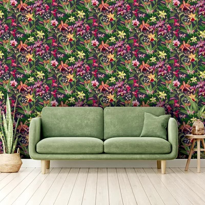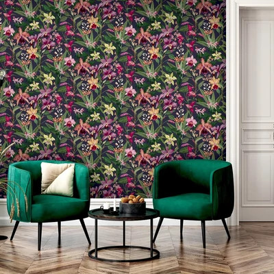 Orchidea virágos színes impozáns tapéta fekete alapszínnel