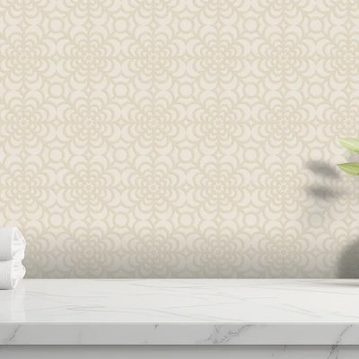 Vintage virágos csempe mintás tapéta fehér-bézs színben