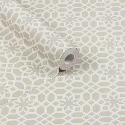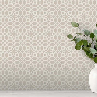 Klasszikus csillagmintás tapéta artdeco stílusjegyekkel bézs színben