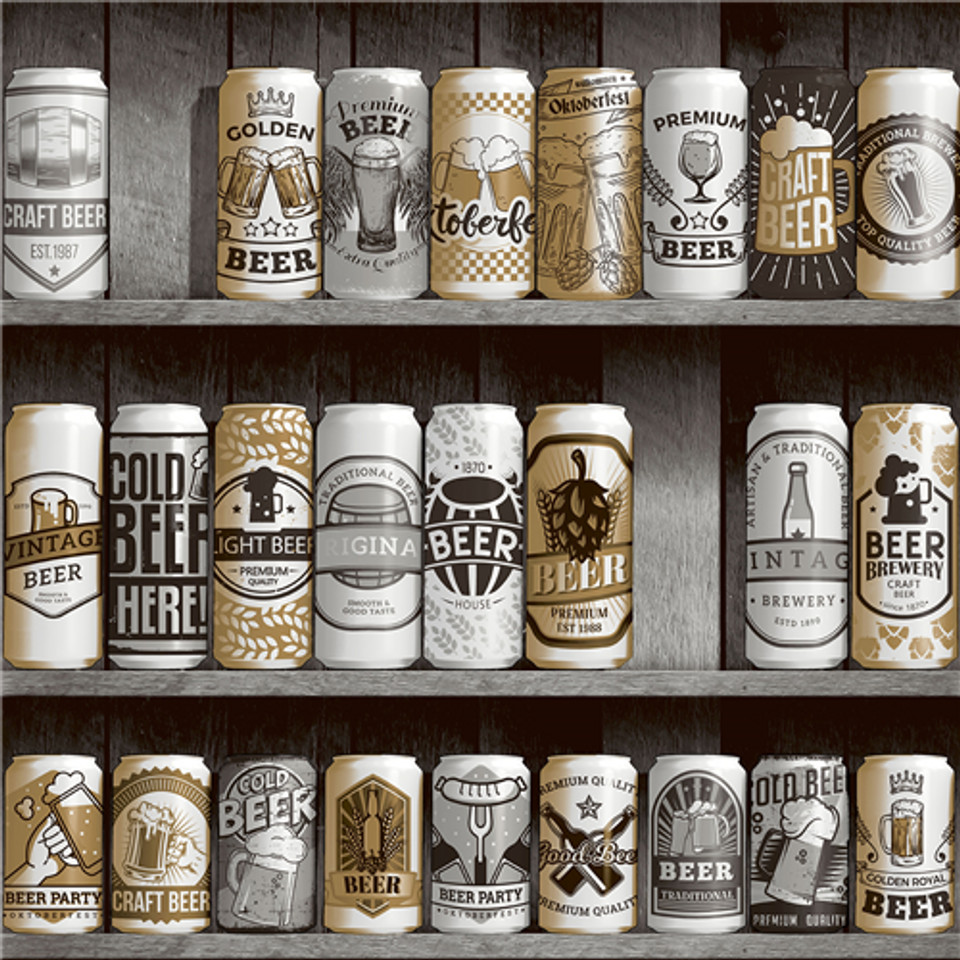 Szürke sörösüvegek a polcon mintás vlies dekor tapéta