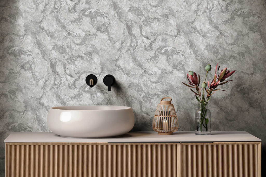 Szürke ezüst márvány mintás dekor vinyl tapéta