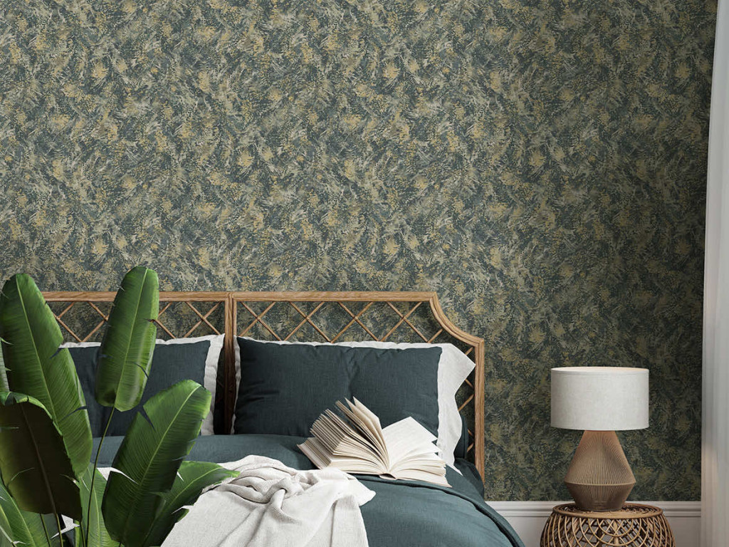 Kék zöld arany antikolt absztrakt mintás vinyl tapéta fémes foltokkal
