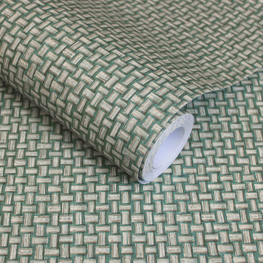 Türkiz natur szőtt rattan mintás vlies tapéta