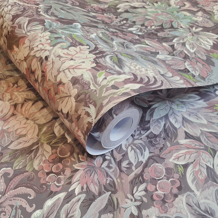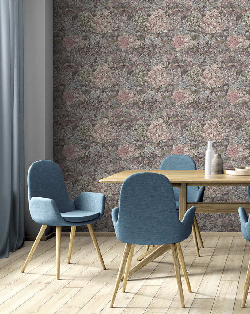 Sűrű levél mintás vlies tapéta rózsaszín színben kevéske halványzölddel enyhén akvarell hatással