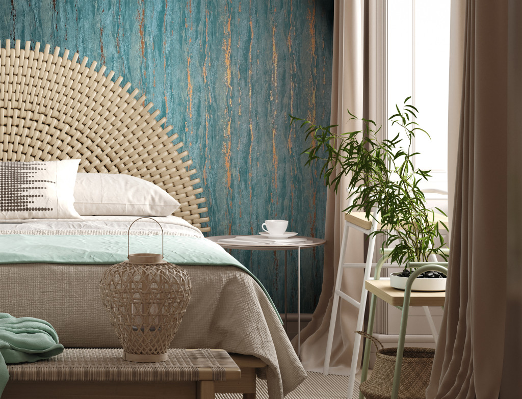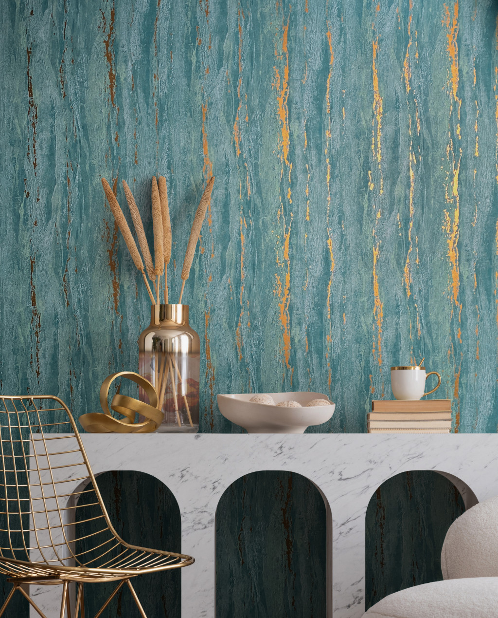 Türkiz és arany színű márvány jellegű csíkos mintás natur vinyl tapéta